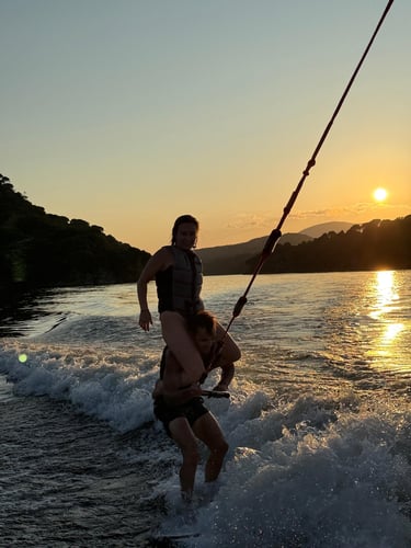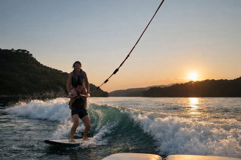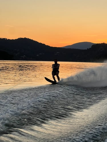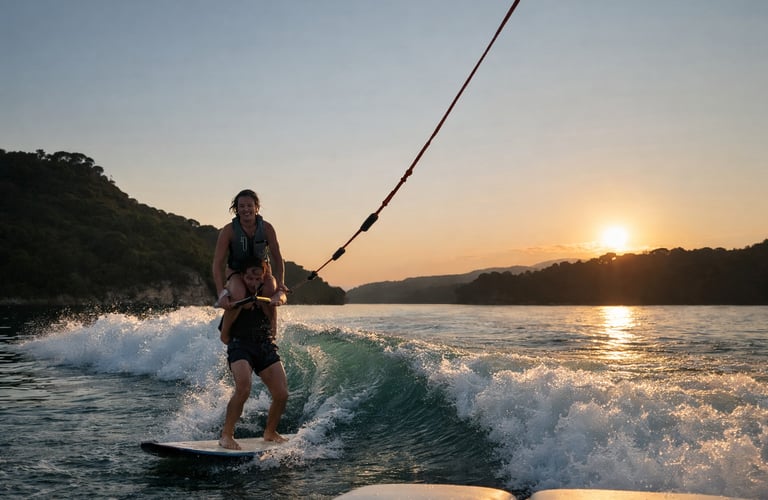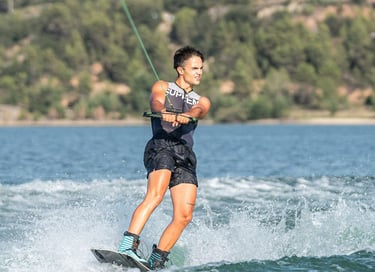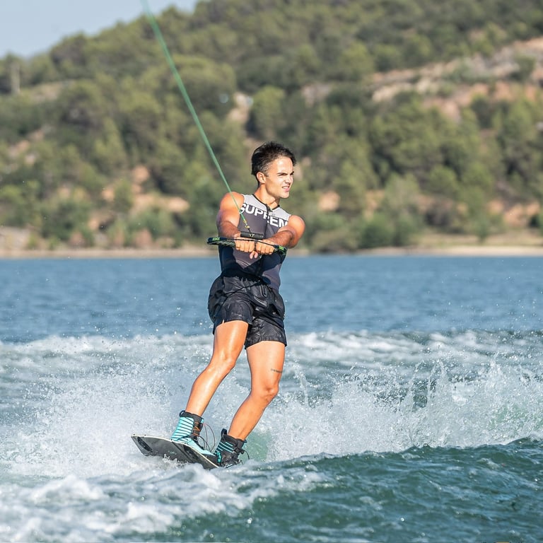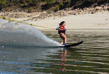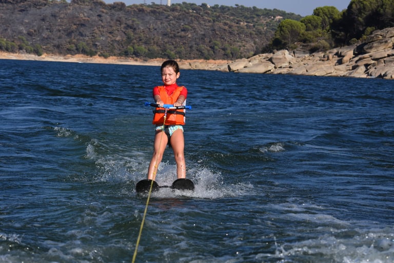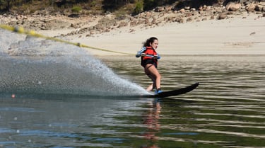 Experimenta la emoción del esquí acuático, deslizándote sobre las aguas con técnica y estilo.