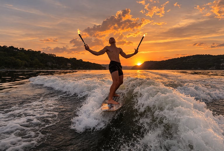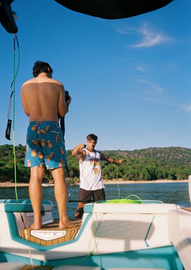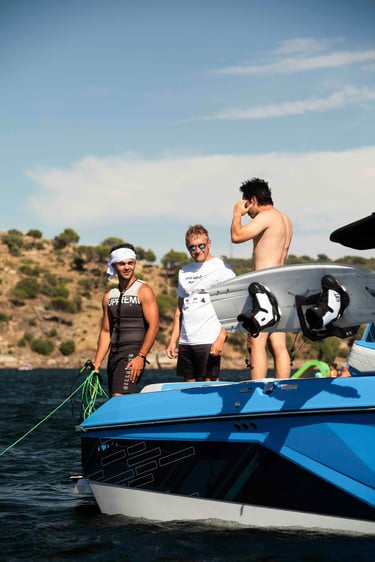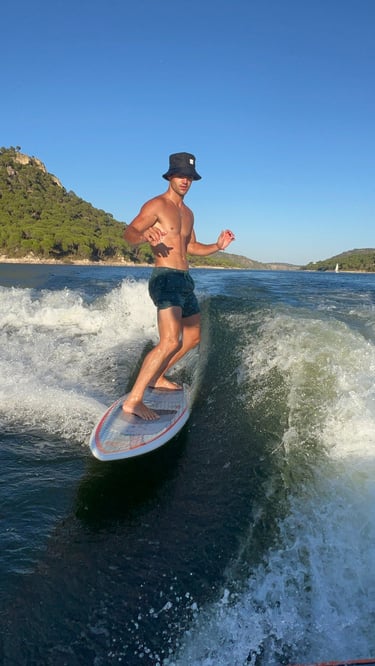 Surf en una ola artificial creada por el barco, como si estuvieses en el mar.