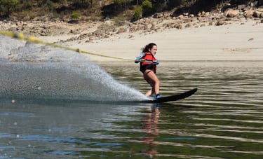 Experimenta la emoción del esquí acuático, deslizándote sobre las aguas con técnica y estilo.